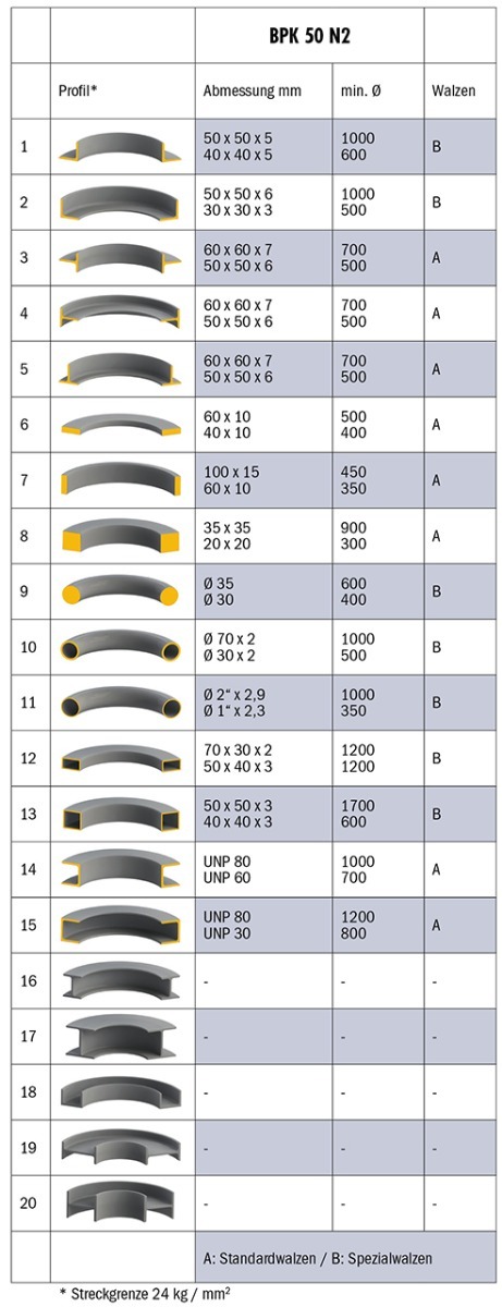Gięcie profili maks.50 x 50 x 3 mm