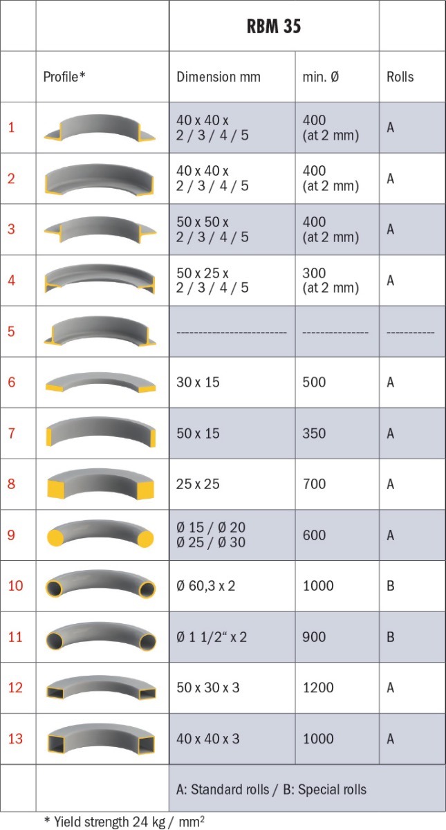 Gięcie profili maks.40 x 40 x 3 mm